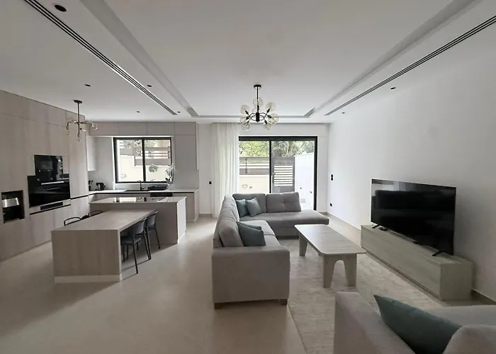 Situated approximately a 25-minute walk from the Jordan Gate Towers, the spacious Homyz Luxury 3-Bedroom Apartment Amman provides convenient access to numerous nearby attractions. Wi-Fi and complimentary private parking are provided for guests' business or leisure needs.